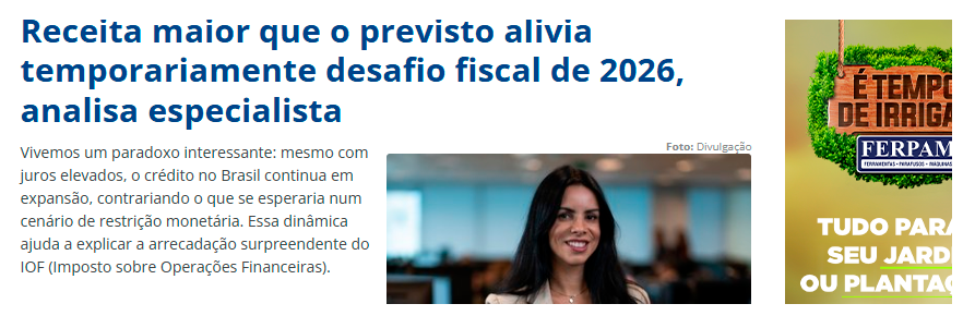 Receita maior que o previsto alivia temporariamente desafio fiscal de 2026, analisa especialista